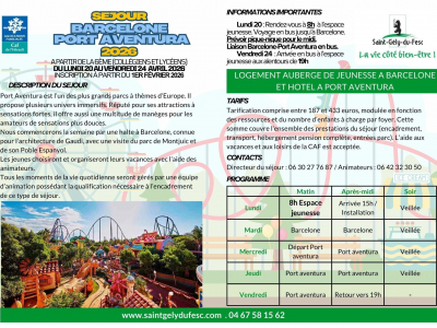 CAMP BARCELONE/PORT AVENTURA Du lundi 20 au vendredi 24 avril 2026